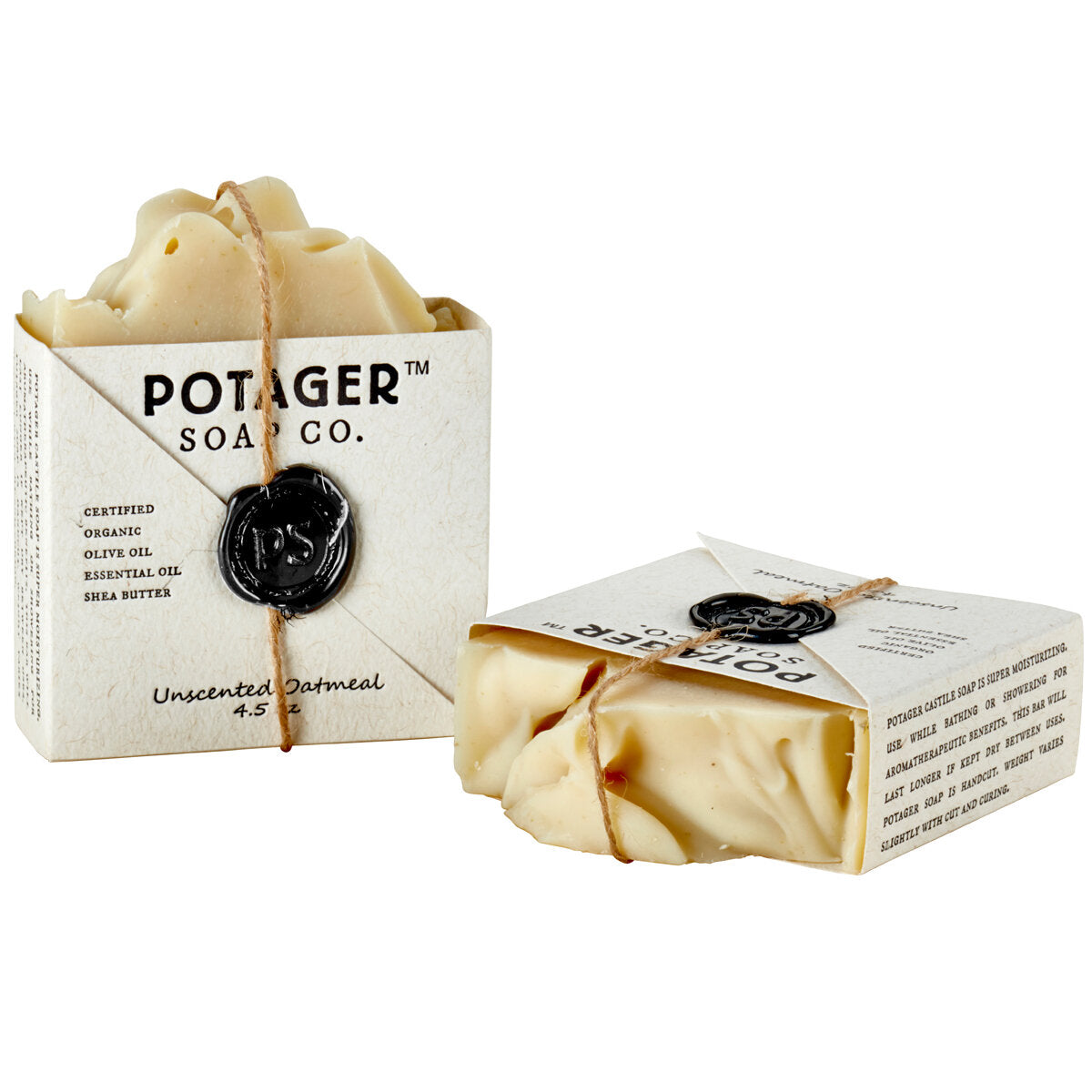 <p id="">Organic vegetable oils to cleanse and moisturize and finely ground organic oatmeal to soothe; Potager’s handmade unscented oatmeal bar soap offers lasting relief to sensitive skin</p><p id="">Ingredients: Organic Olive Oil, Organic Coconut Oil, Organic RSPO Palm Oil, Organic Shea Butter, Filtered Water, Sodium Hydroxide*, Ground Organic Oatmeal, Organic Rosemary Extract</p><p id=""></p>